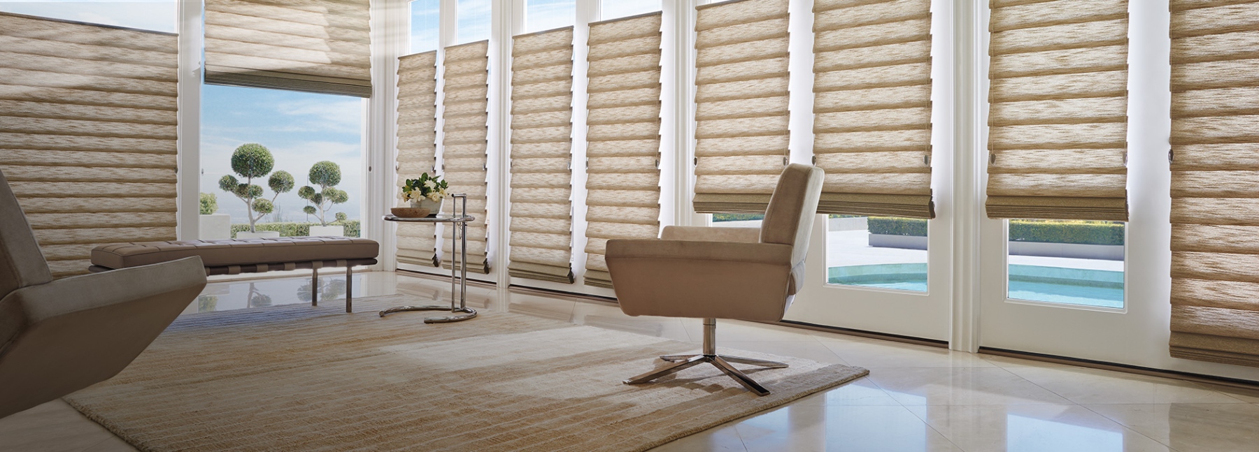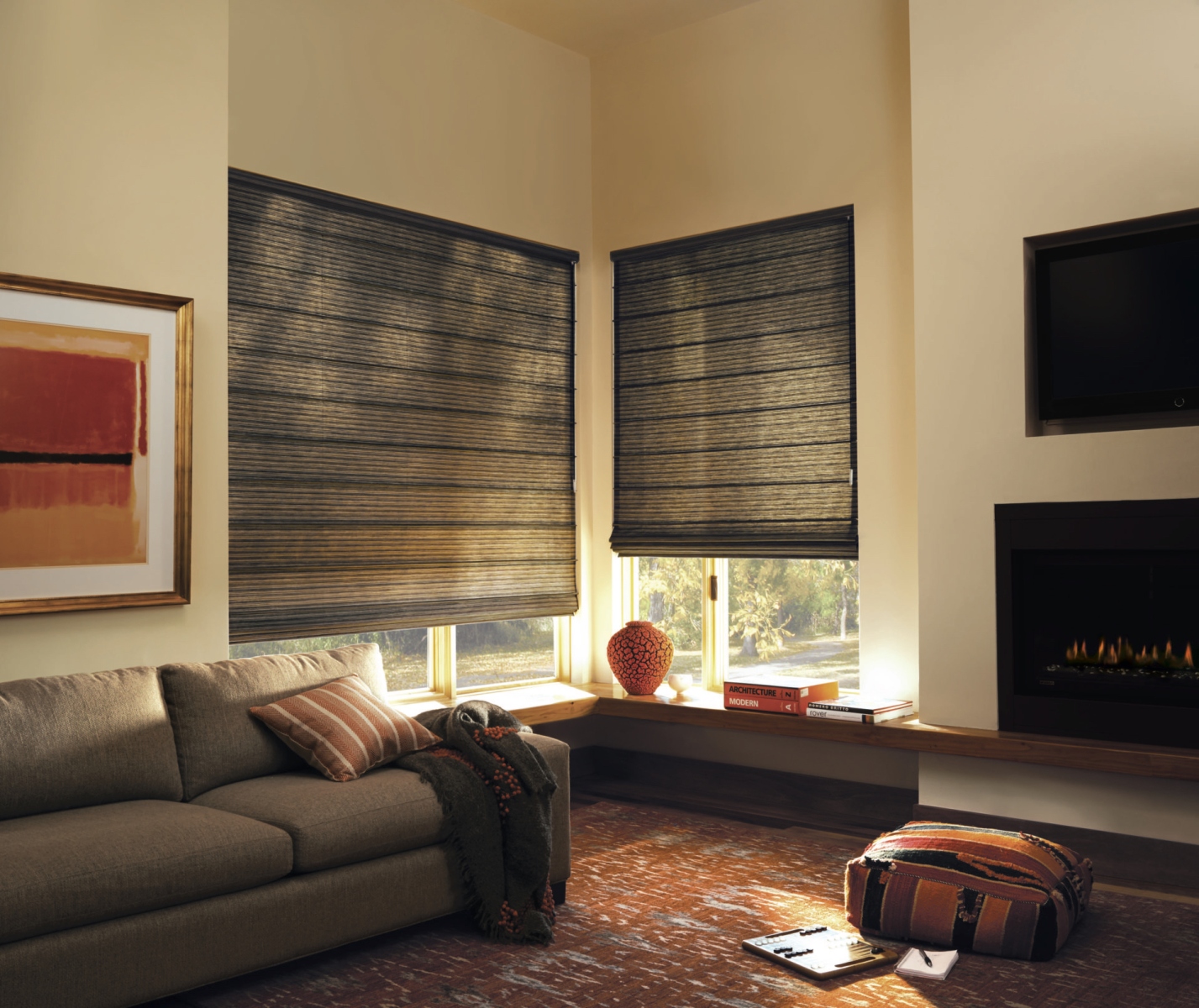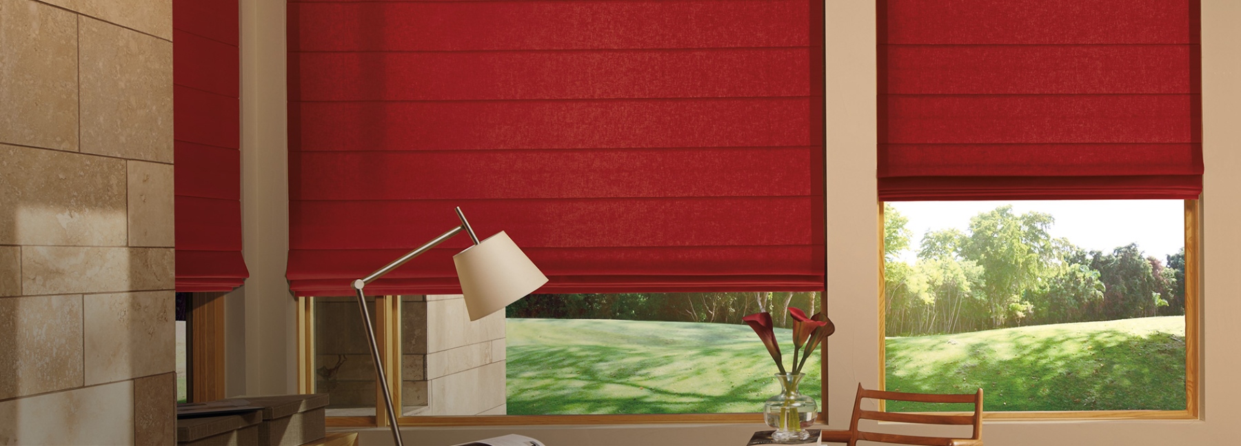 Our Roman Shades and Blinds provide an aesthetic and harmonious comforting home that provides optimal sunlight or shade.